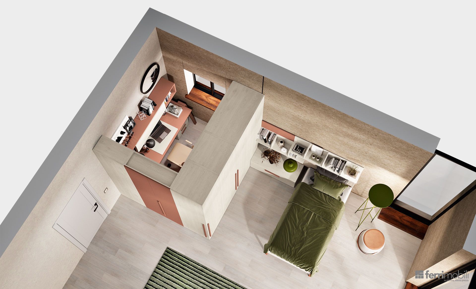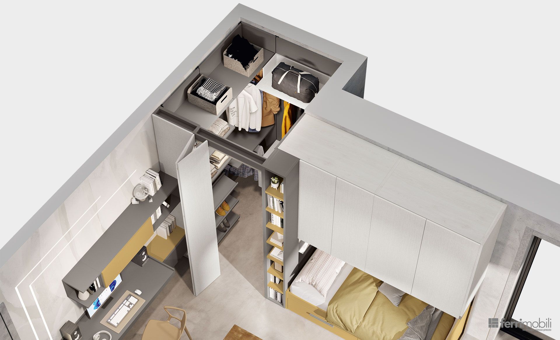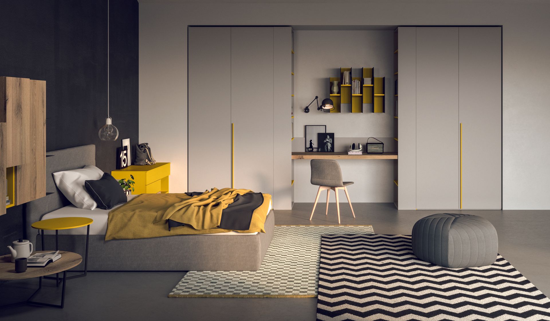Proponiamo arredi funzionali e versatili che spaziano da soluzioni colorate per i più piccoli a soluzioni dai toni neutri per i più grandi, con l'aggiunta di armadi capienti, zone studio e librerie e, per ottimizzare e utilizzare al meglio gli spazi, offriamo soluzioni con letti a castello, soppalchi o cabine armadio.